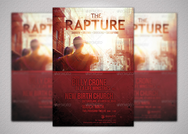 The Rapture Church Flyer and CD Template is geared towards usage in any Contemporary Church Event. The theme is perfect for event dealing with Prophecy, End Time Event, The Second Coming, etc., use it for Sermons, Conventions or just about any event that needs an out of the box, eye catching flyer. In this package you’ll find 3 Photoshop files. All layers in the files are arranged, color coded and simple to edit.