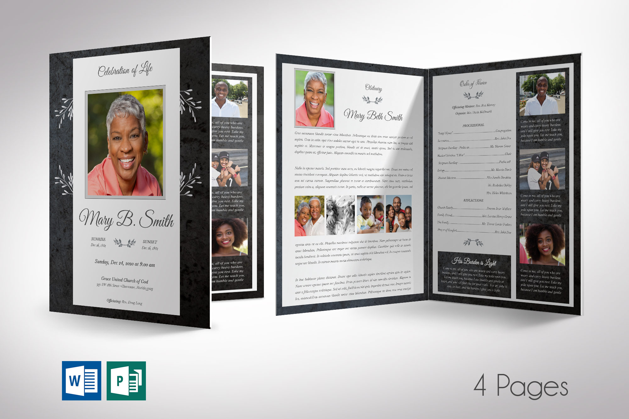 Graystone Legal Trifold Funeral Program Word Publisher Template