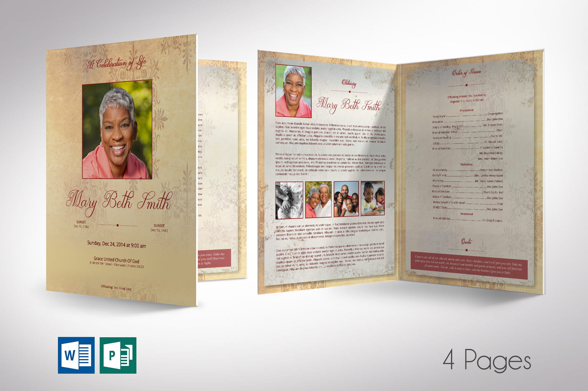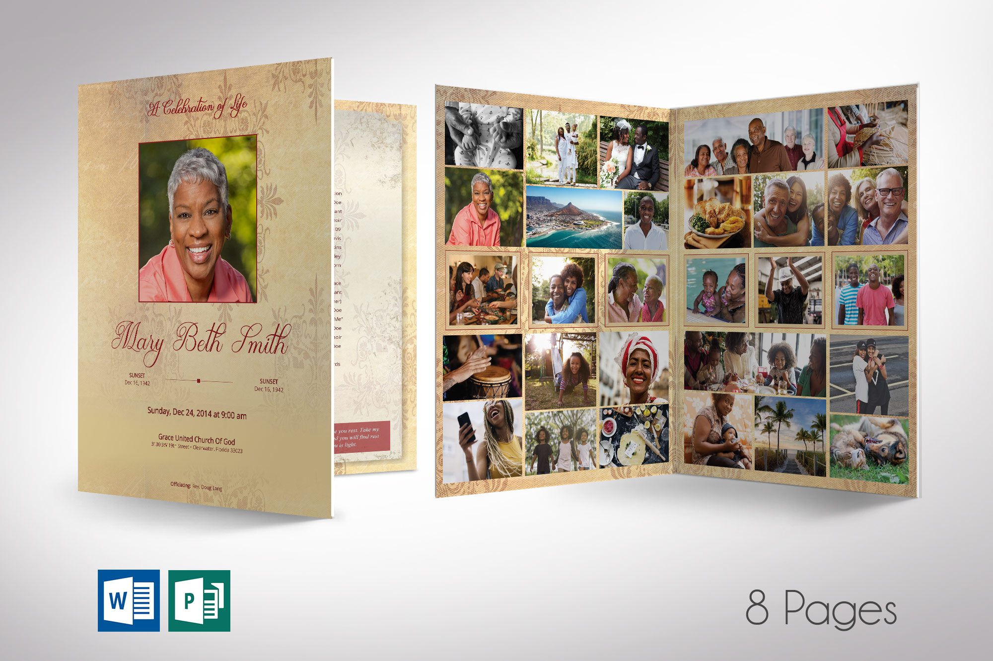 Remember Gold Tabloid Trifold Funeral Program Word Publisher Template