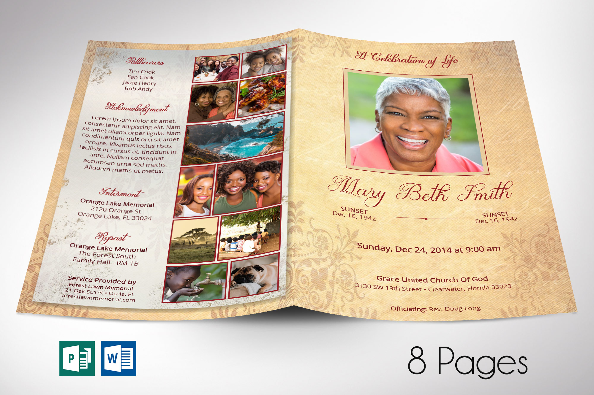 Copper Dignity Tabloid Funeral Program Word Publisher Template