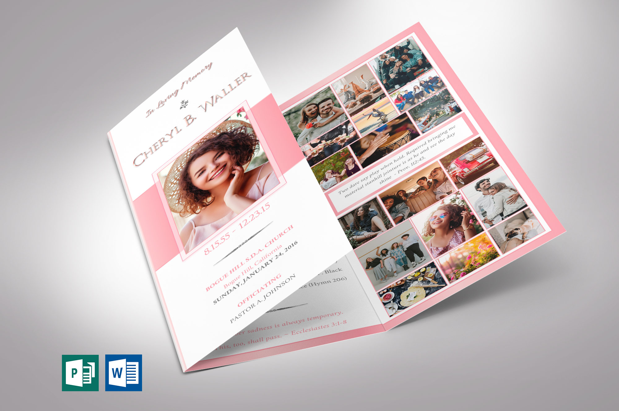 White Pink Tabloid Funeral Program Word Publisher Template |