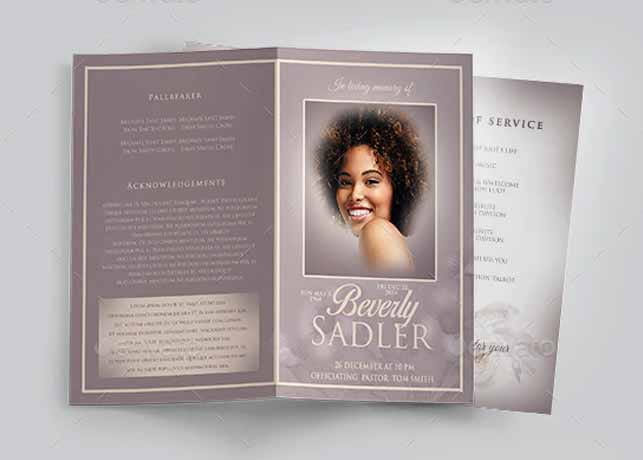 Purple Memories Tabloid Trifold Funeral Program Template for Canva, a heartfelt tribute to their journey. This Canva template, sized at 17x11 inches (Trifold to 5.75x11 inches)