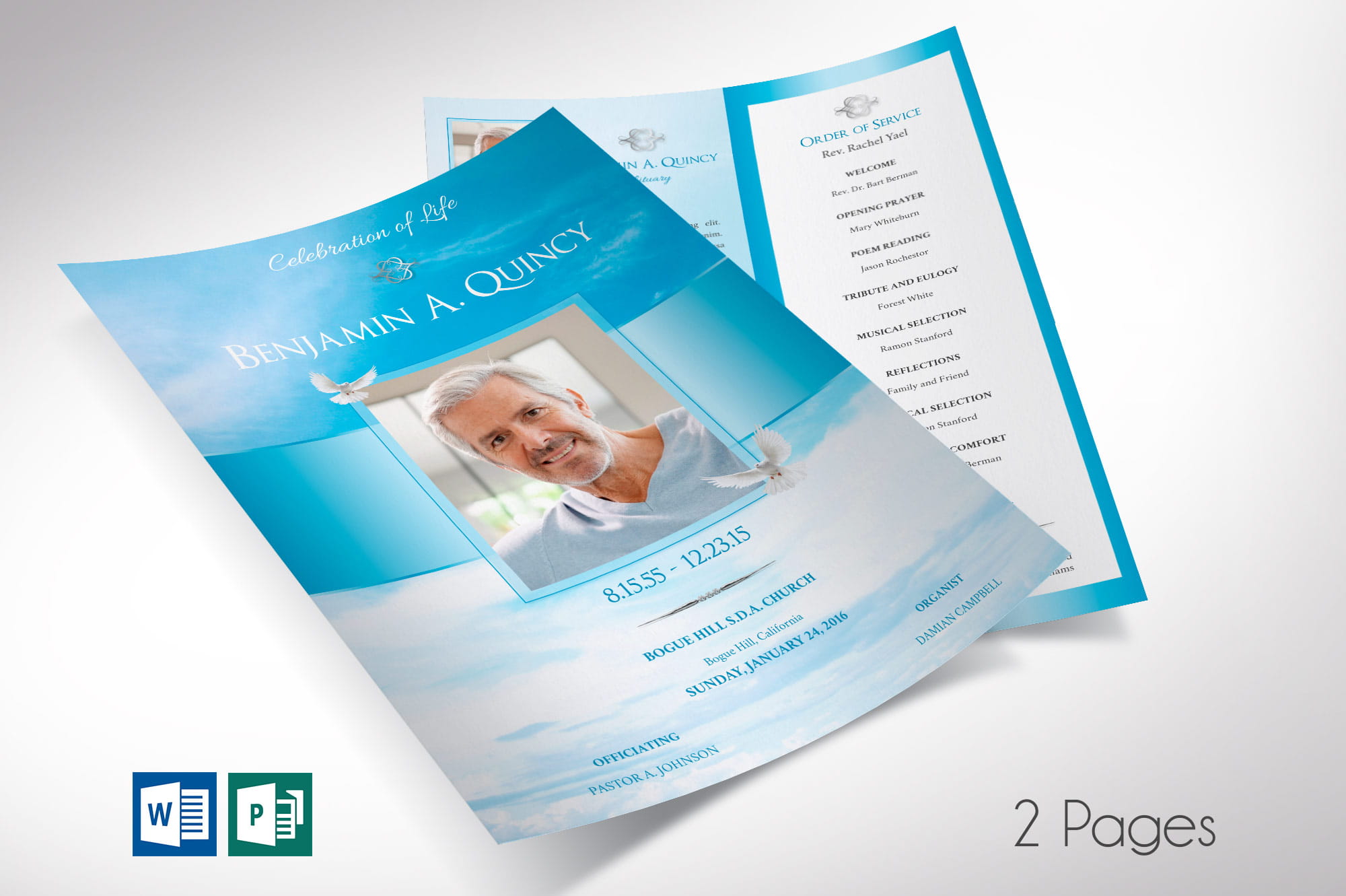 Clouds Single Sheet Funeral Program Word Publisher Template