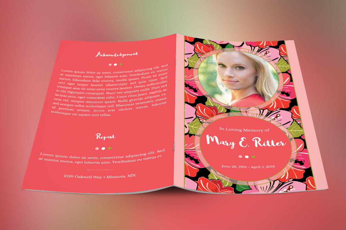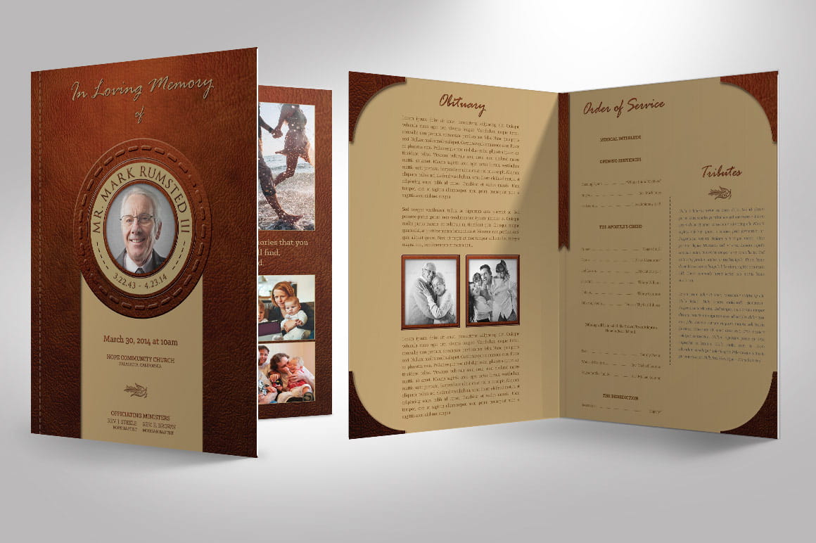 Leather Funeral Program Word Publisher Template – 4 Pages